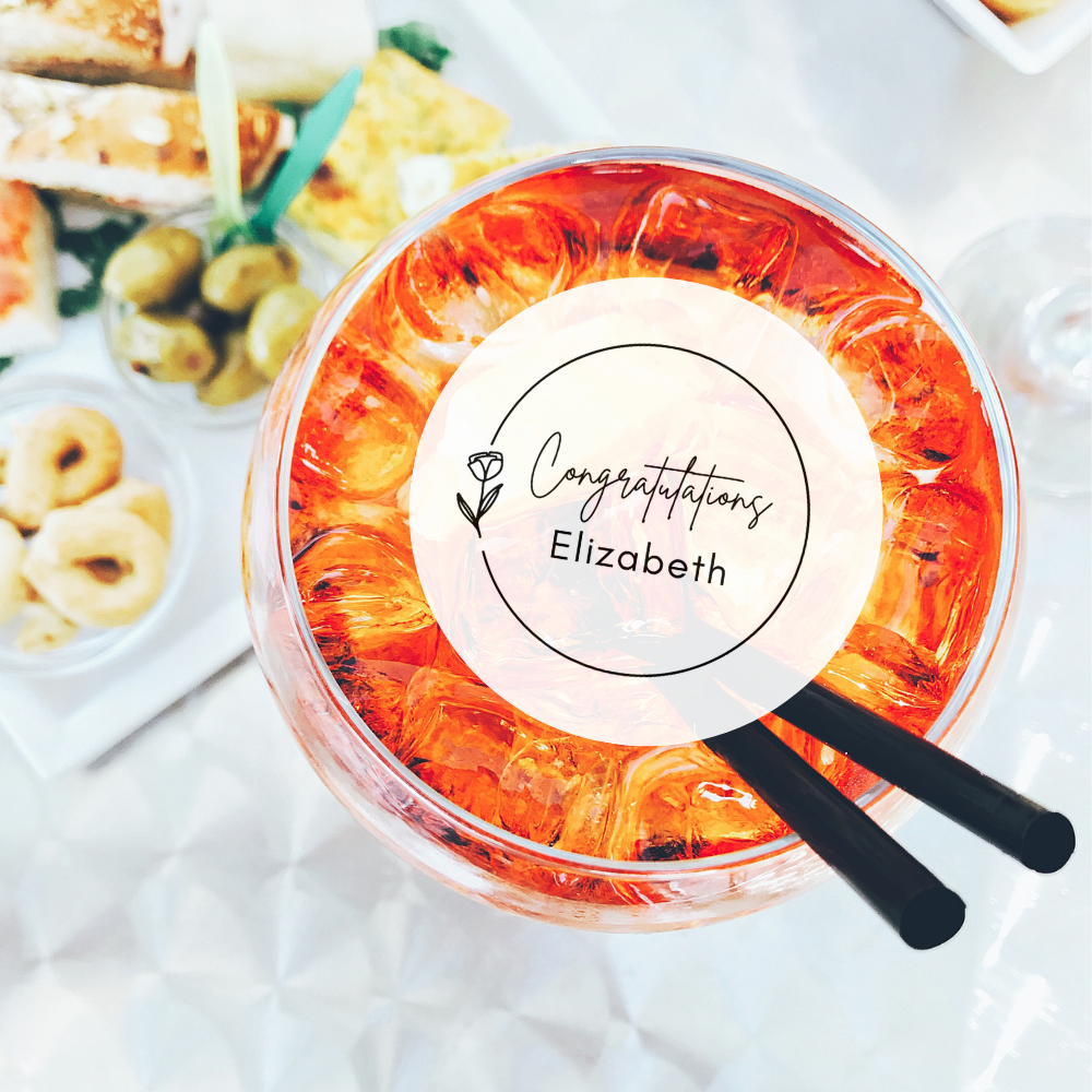 Celebrate any special occasion with our custom, pre-cut edible drink toppers! Made from wafer paper and printed with edible ink, these unique toppers are perfect for adding a personalized touch to both hot and cold beverages. They'll hold their shape for up to 20 minutes before gently settling to the bottom of the glass.