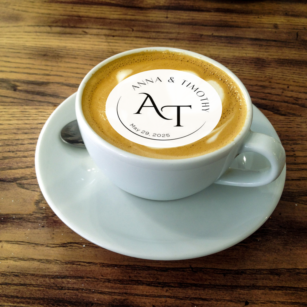Elevate your special event with these custom, pre-cut edible drink toppers. These wafer paper toppers, printed with edible ink, can be used to top any hot or cold beverage. They will remain intact for around 20 minutes before they start to settle to the bottom of the glass. They do not dissolve.