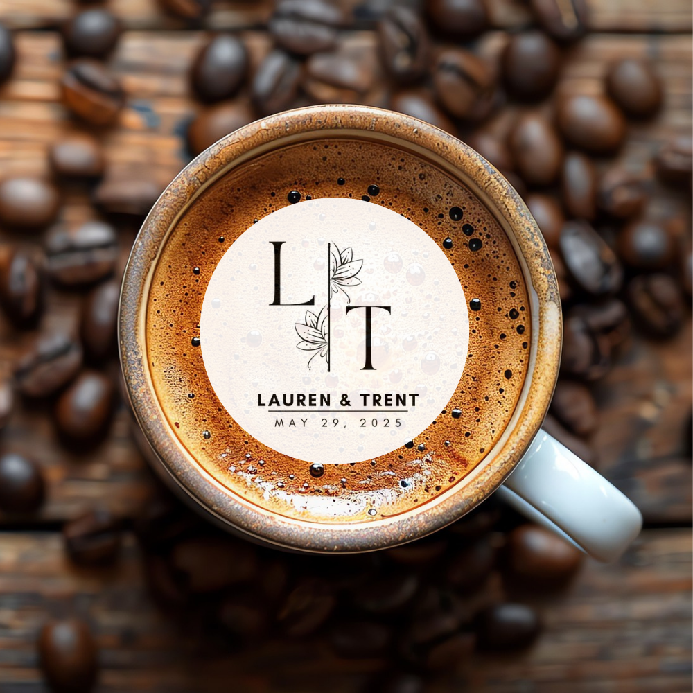 Elevate your special event with these custom, pre-cut edible drink toppers. These wafer paper toppers, printed with edible ink, can be used to top any hot or cold beverage. They will remain intact for around 20 minutes before they start to settle to the bottom of the glass. They do not dissolve.