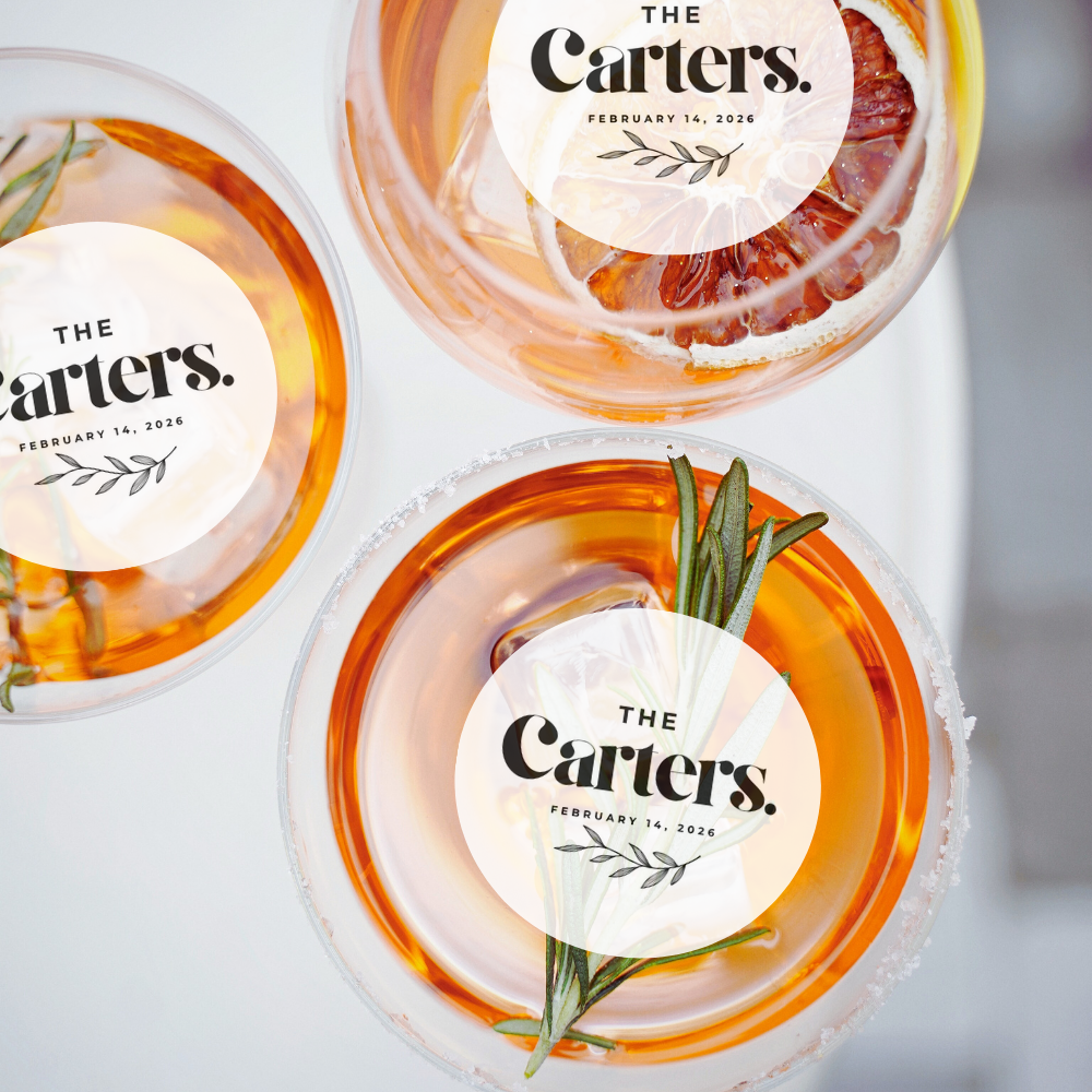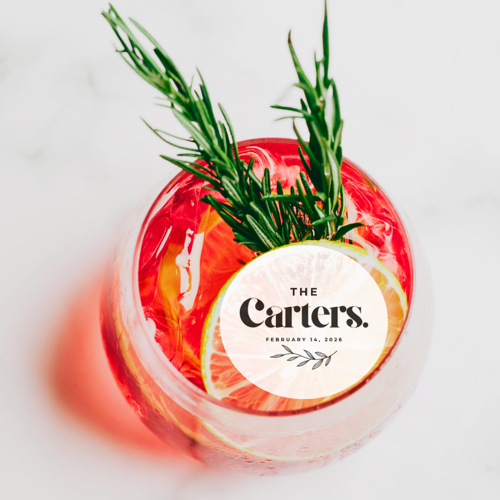 Wedding Edible Drink Toppers - Custom Last Name & Date